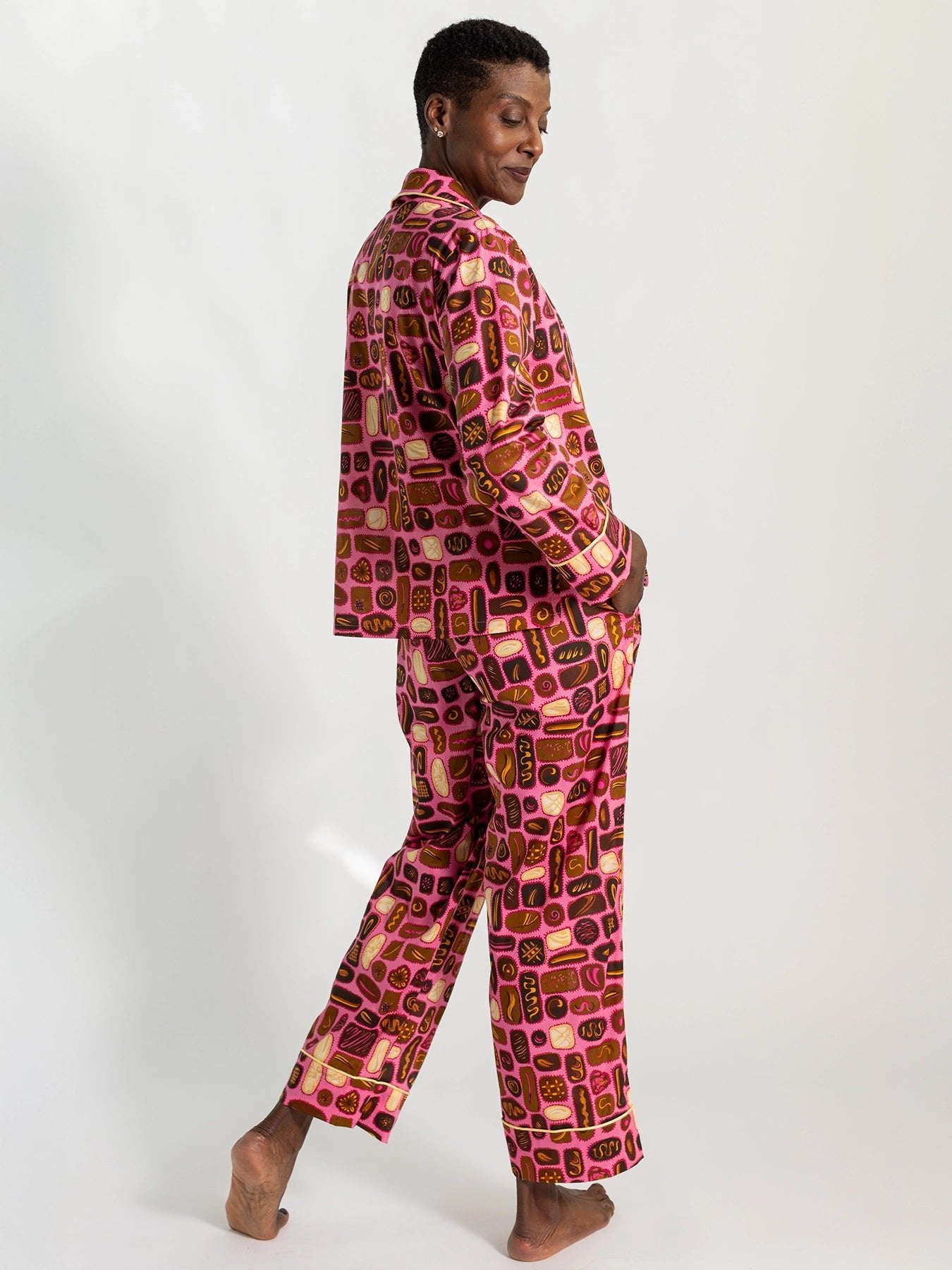 Like opening a box of chocolates, these pajamas are pure delight. Our beloved cotton PJ set returns in the Box of Chocolate textile — soft, cheerful, and made for lingering mornings. Gift yourself something special, or surprise someone you love with comfort that lasts long after the wrapping is gone.
