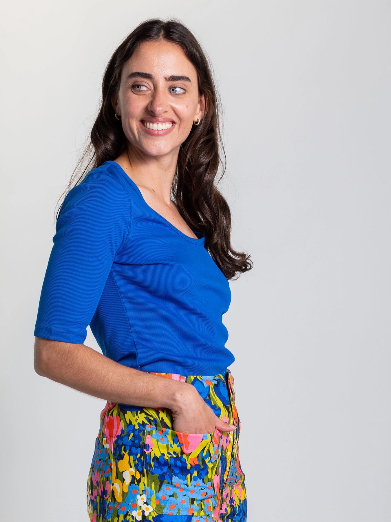 Our Mallory top boasts the biggest scoop in the t-shirt collection. The 1/2 sleeves are the perfect balance on this sleek top.