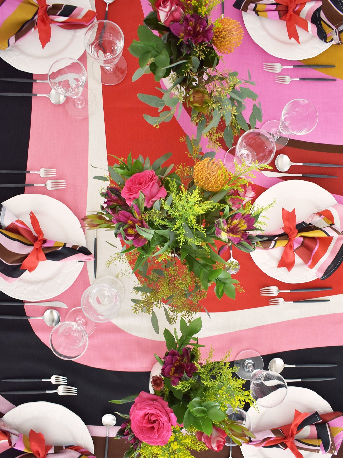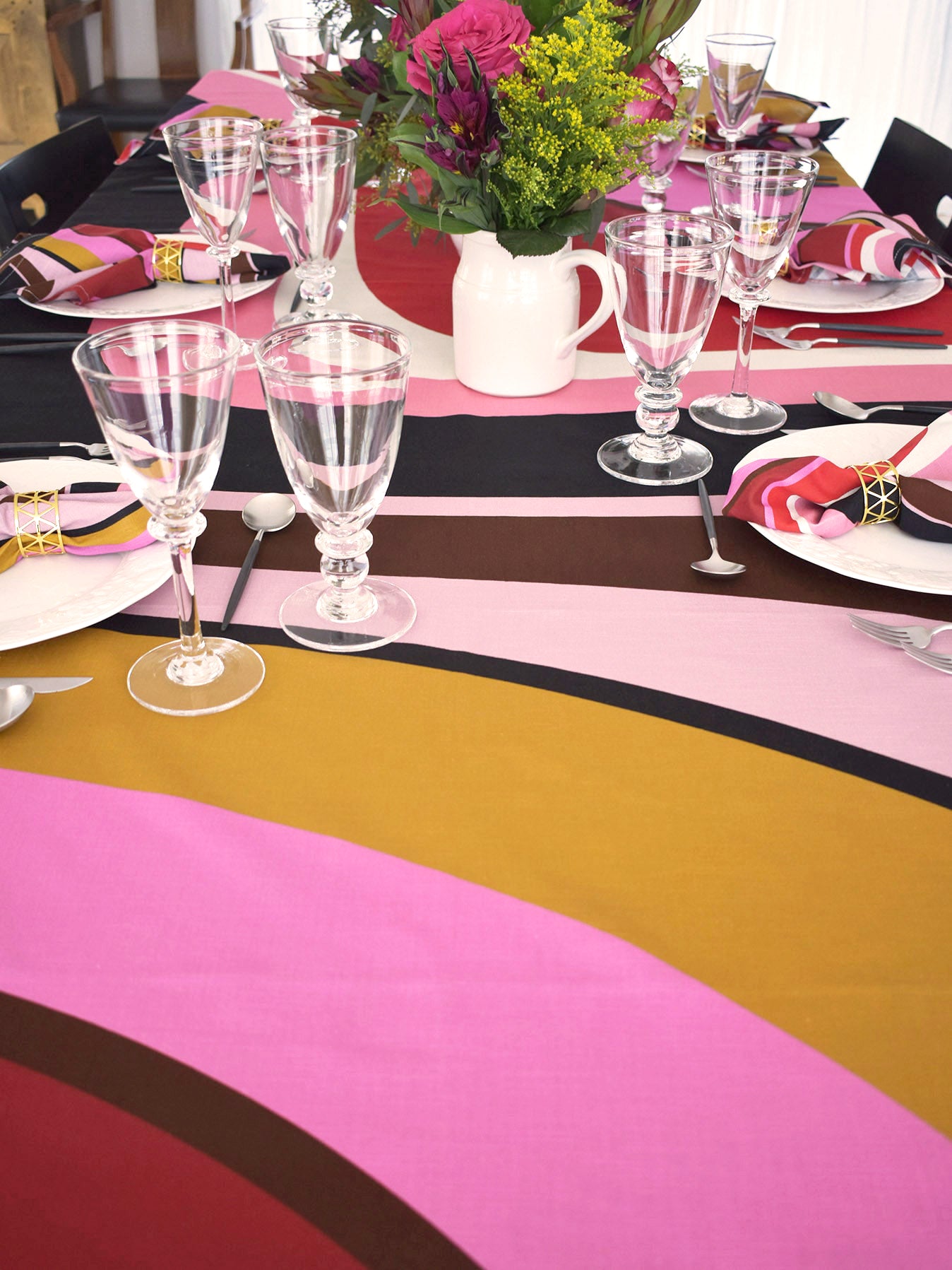 Our brand's signature print, scaled extra large, makes a statement of color, modern style, and charm. With matching napkins, this table setting is poised for any occasion—bold and beautiful, it's sure to delight and inspire.