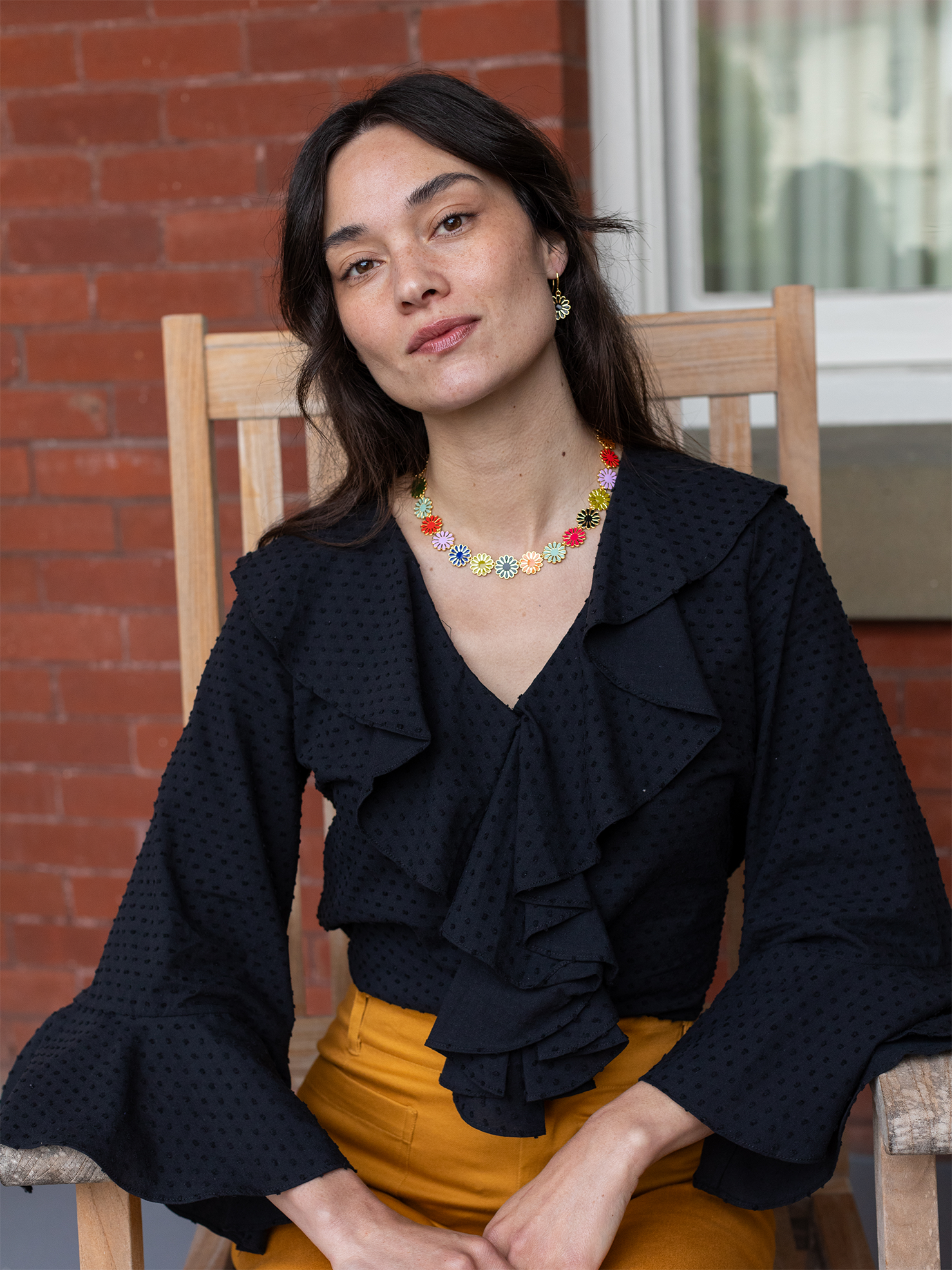 The Spritz Necklace is a modern twist on florals; playful, punchy, and polished. A parade of enamel-painted daisies forms a radiant collar necklace. Whether worn for a holiday party or layered over a crisp shirt, it’s a fresh take on statement jewelry with just enough sparkle to make every day feel special.