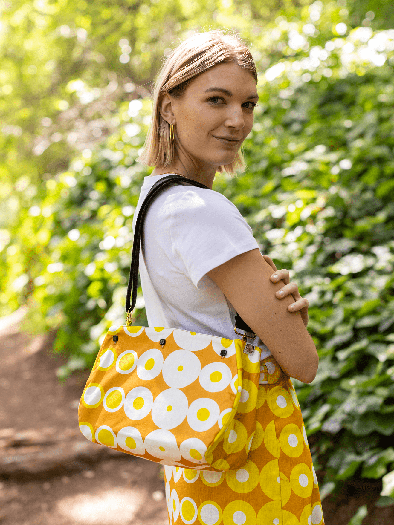 Inspired by the iconic Bermuda bags of the 1970s, we’re delighted to present the MAGGIE Bag—a reimagined classic with a contemporary twist. MAGGIE’s comfortable crossbody strap makes it effortlessly stylish and practical, offering a fresh way to carry a timeless look. Compatible with the same reversible covers as our BONNIE Bag, you can mix and match a variety of prints and patterns to perfectly coordinate with our dresses and outfits. With MAGGIE, you can enjoy the nostalgic charm of a Bermuda bag, redefined for today’s style.