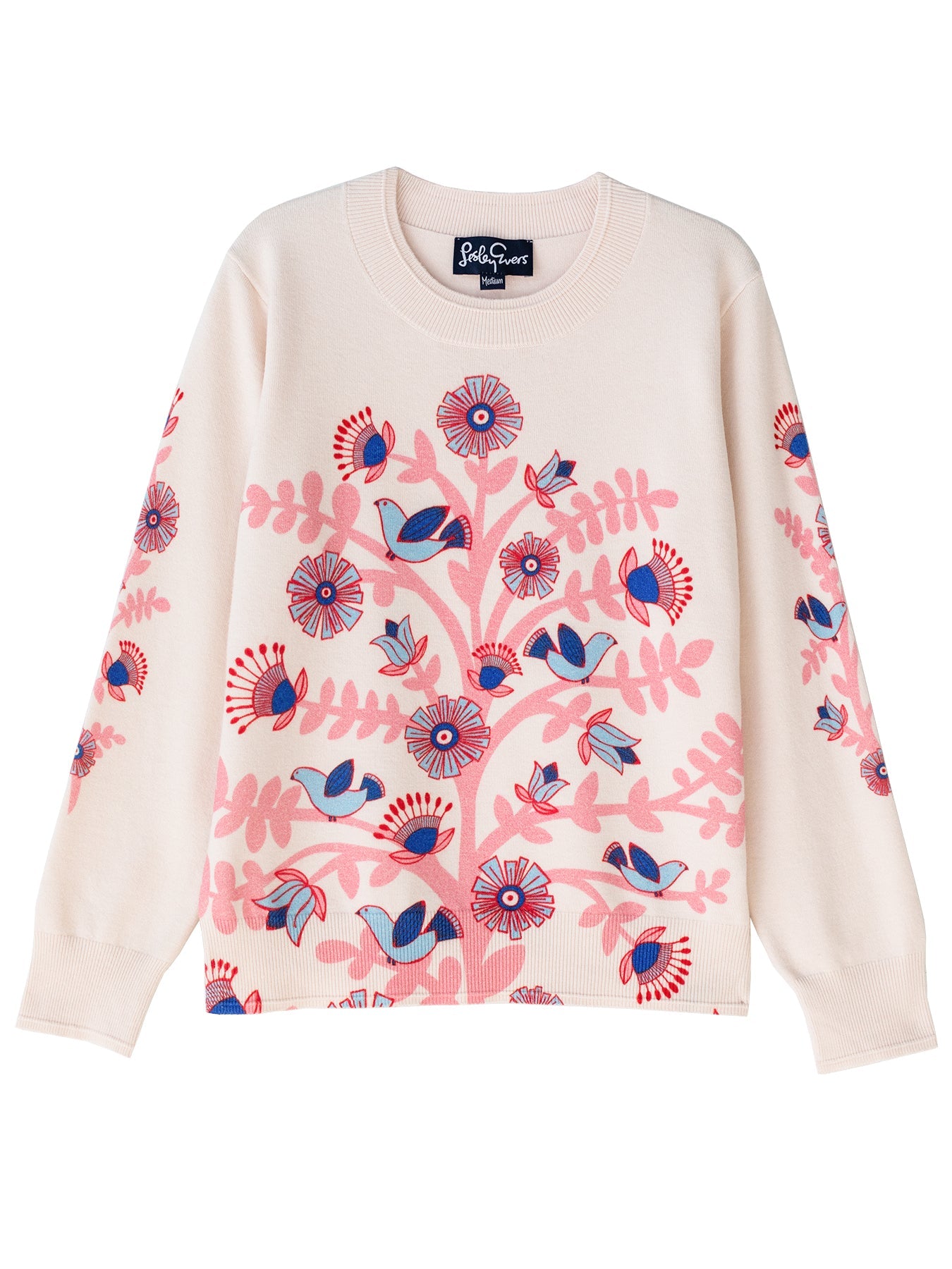 A customer favorite, reimagined for spring. The Amelia Sweater features a soft, easy crewneck silhouette in vibrant new prints. Perfect layered or worn on its own.