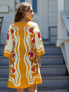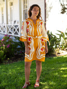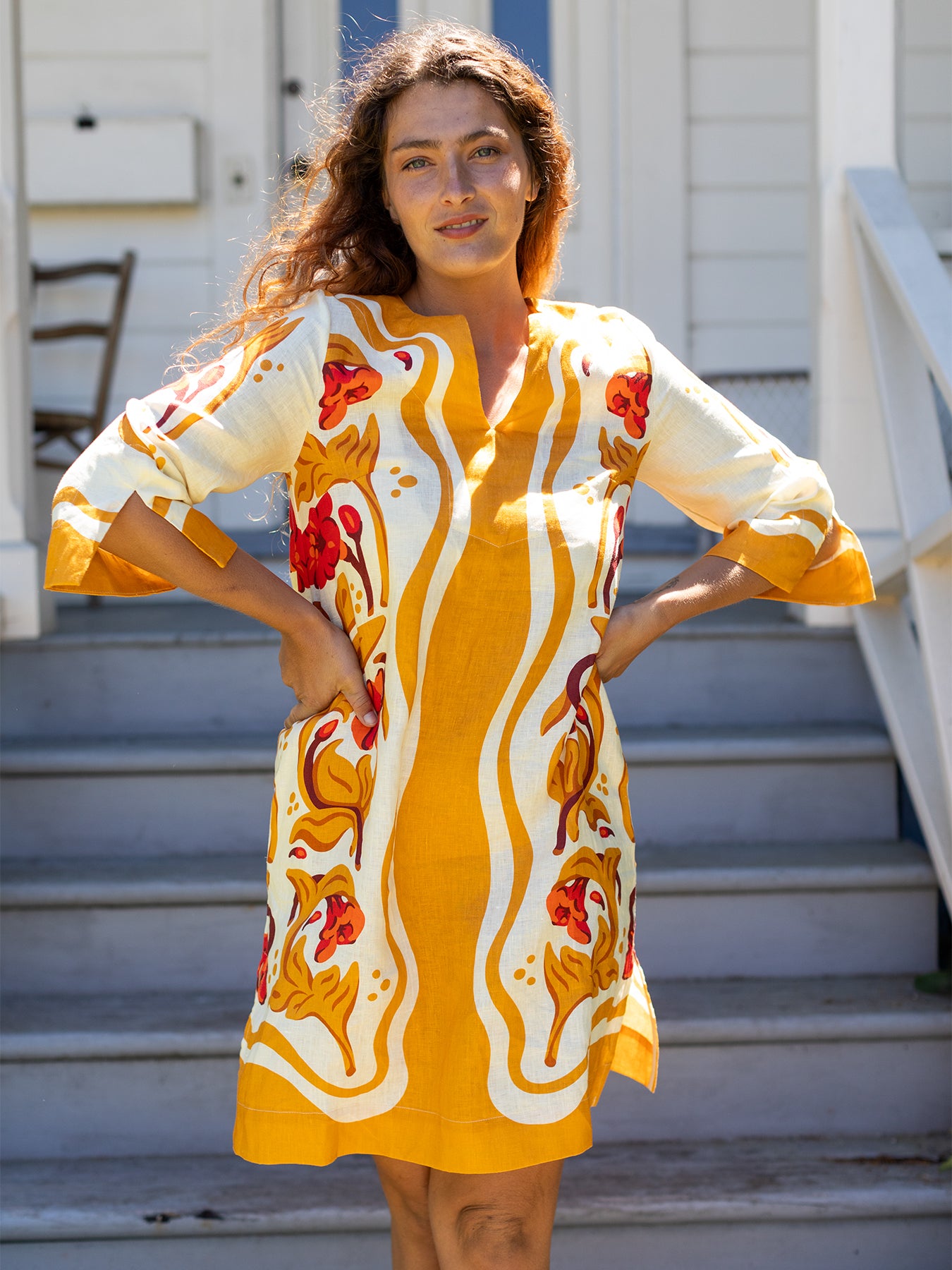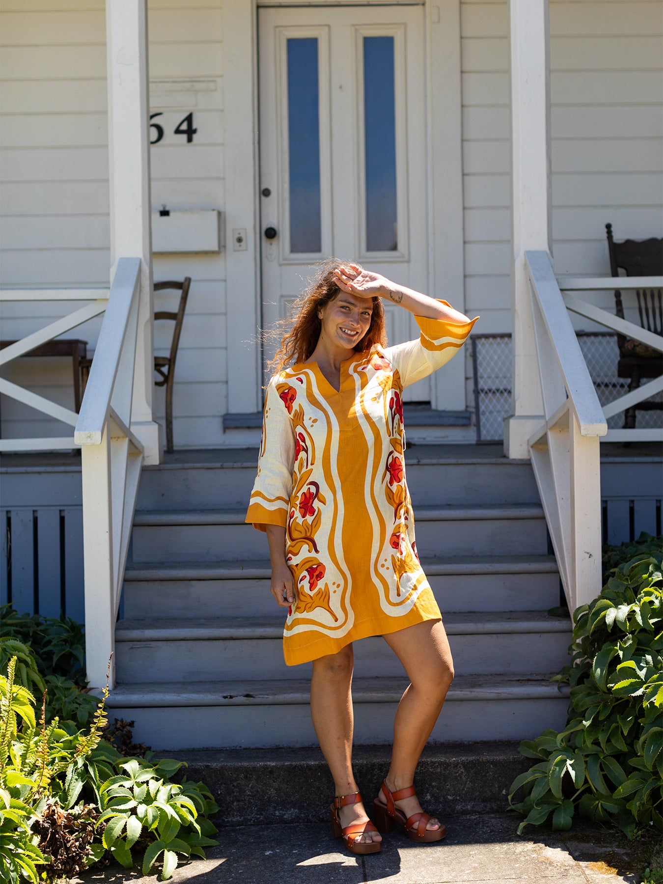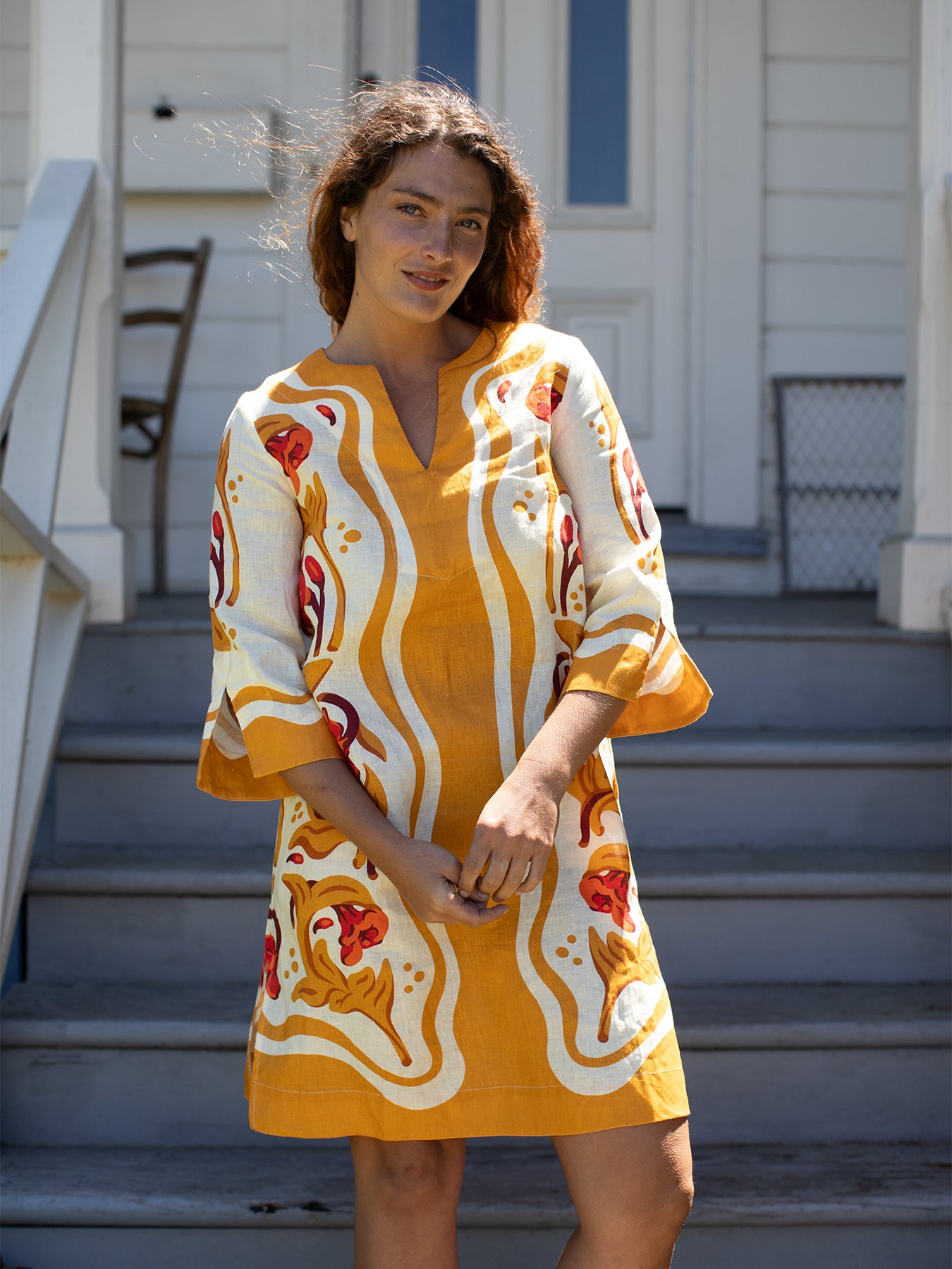 With balanced beauty, the April dress is crafted from 100% linen and adorned with artwork that feels both artful and timeless. The engineered print flows gracefully, creating a look that’s striking in its symmetry and charm.