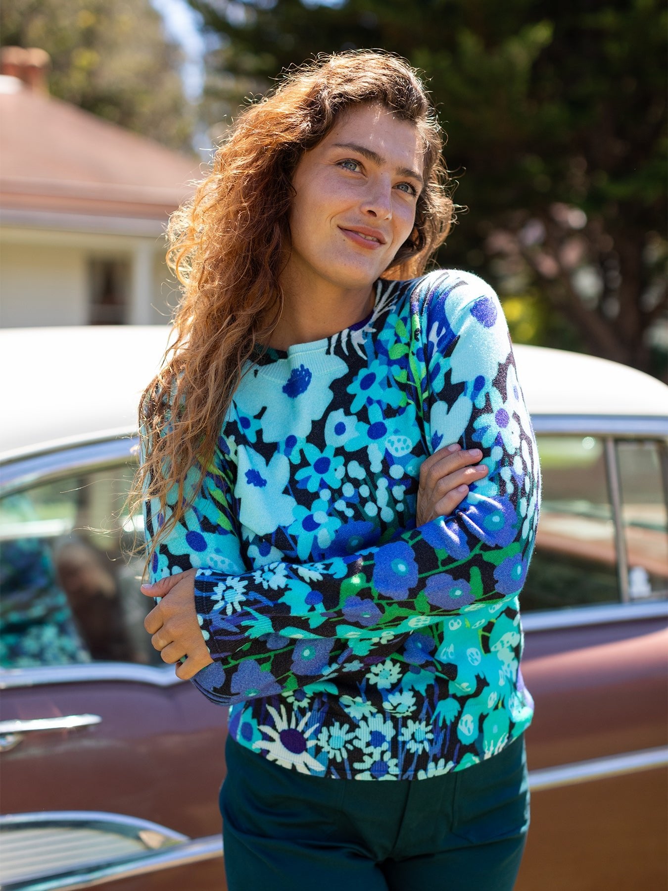 Cool weather has arrived, and so has Amelia! This cozy printed sweater is the perfect fall companion—super soft and wonderfully uplifting. Add a burst of color to brighten up any autumn day.