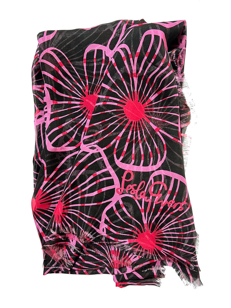 Add a pop of color to any outfit with Esme! This lightweight, fringed-edge silk chiffon scarf features a bright, eye-catching print. It's sophisticated enough for special occasions yet versatile enough to elevate your everyday look.