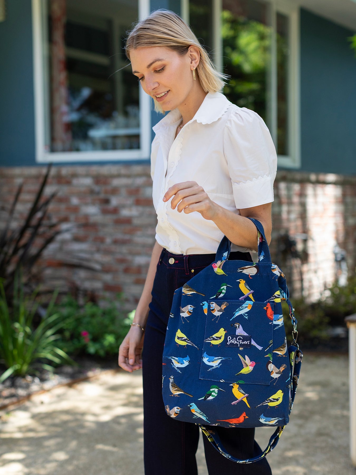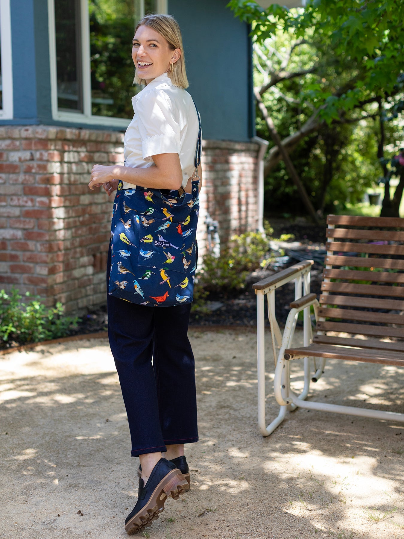The Ivy tote is versatile and holds more than you expect. Wear as a cross-body or remove the strap and carry as a cute handbag. For the bird-lovers, this tote is so cute and colorful!