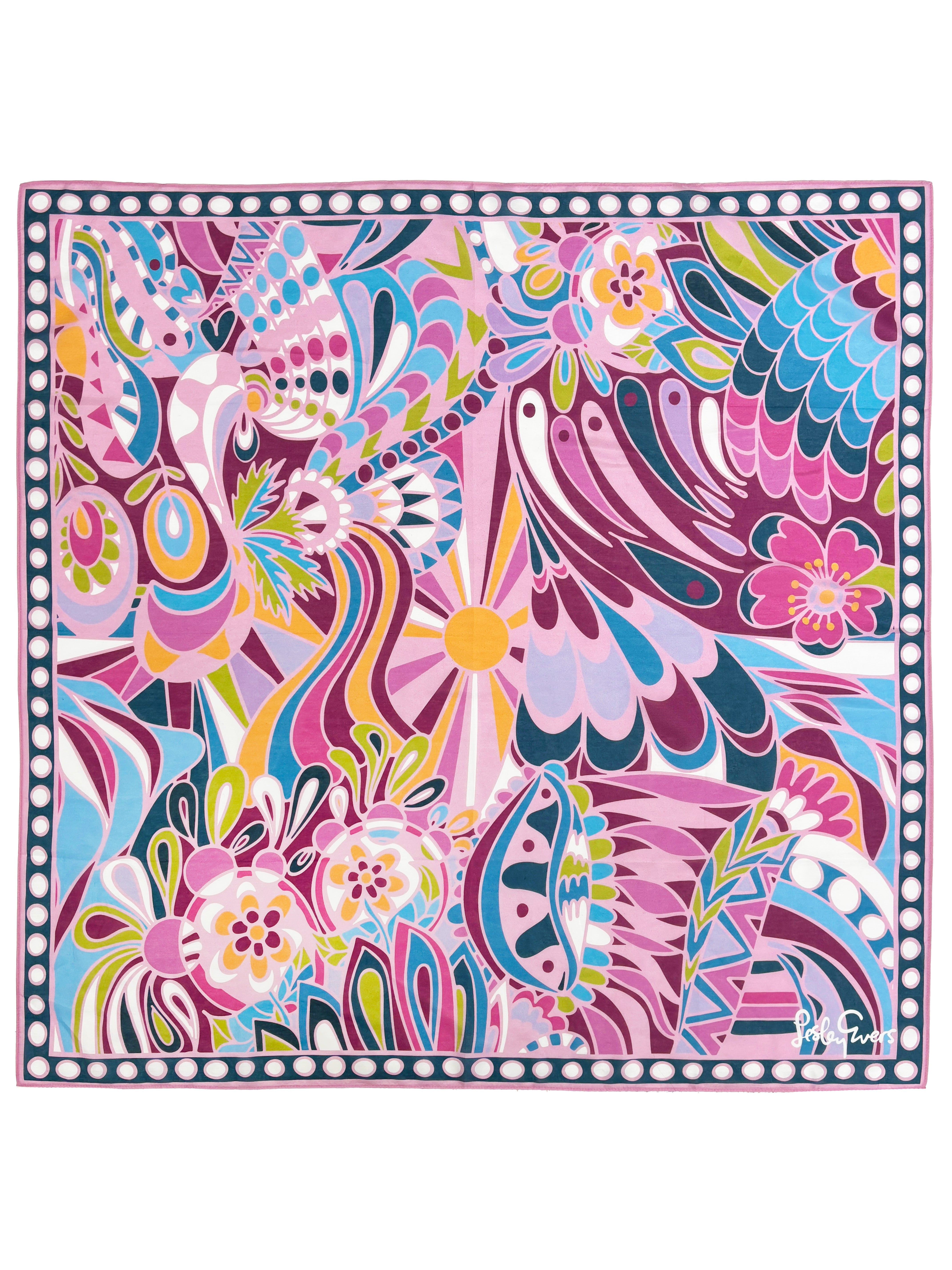 A lightweight silk/cotton scarf that adds just the right splash of color to any outfit. These large square scarves are super versatile—tie it, wrap it, drape it—you name it. They're that extra little something that pulls your whole look together. They make a great gift too.